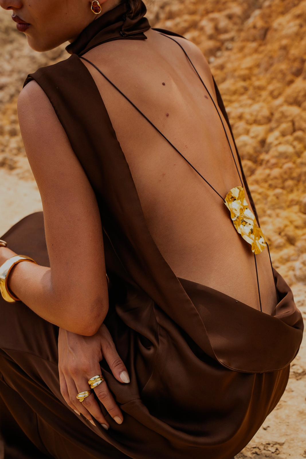 AlUla. Un désert de pierre et de lumière, où le silence raconte la force. C’est là que Merakhi trouve son souffle. De cette terre brute est née une collection sensible et sculptée, pensée pour incarner une élégance maîtrisée, et la puissance douce de la féminité.